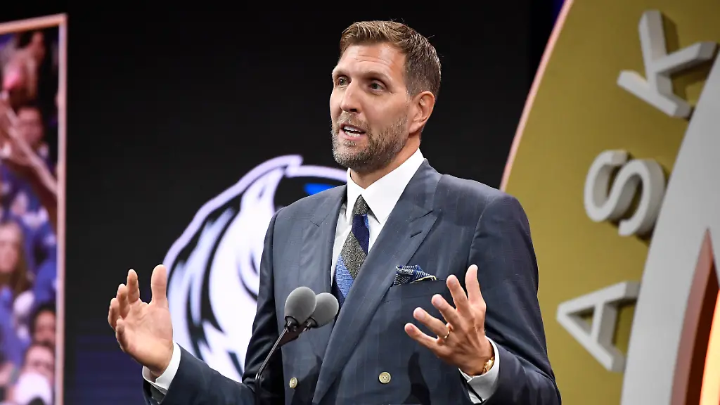 Bei der letzten ganz großen öffentlichen Ehrung für seine herausragende Basketball-Karriere musste sich Dirk Nowitzki auf der Bühne kurz sammeln. Im blauen Anzug mit Einstecktuch und Krawatte machte der 45-jährige Würzburger während seiner Rede zur Aufnahme in die Ruhmeshalle seines Sports am Samstagabend (Ortszeit) Witze und verteilte Seitenhiebe an alte Mitspieler bei den Dallas Mavericks.