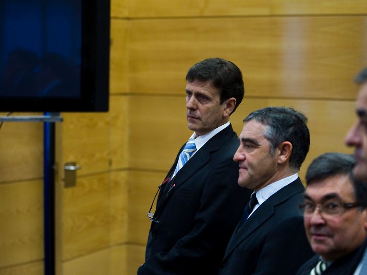 Der frühere Radsport-Manager Manolo Saiz (2.v.l.) gehört wie Eufemiano Fuentes zu den Angeklagten im größten spanischen Dopingprozess.