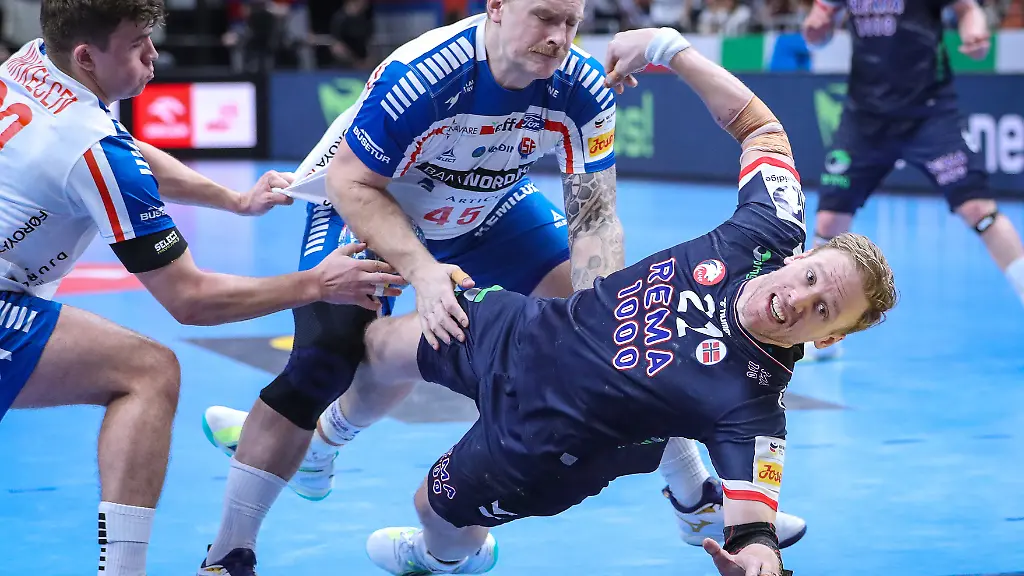 Bei der letzten Aktion des Spiels traf Ellefsen a Skipagötu mit seinem sechsten Tor per Siebenmeter zum Ausgleich. Zuvor schienen die Norweger, bei denen Alexander Blonz (acht Tore) erfolgreichster Werfer war, den Kopf nach einer durchgehend engen Partie noch einmal aus der Schlinge gezogen zu haben. Doch auch eine Drei-Tore-Führung drei Minuten vor dem Ende reichte nicht aus.