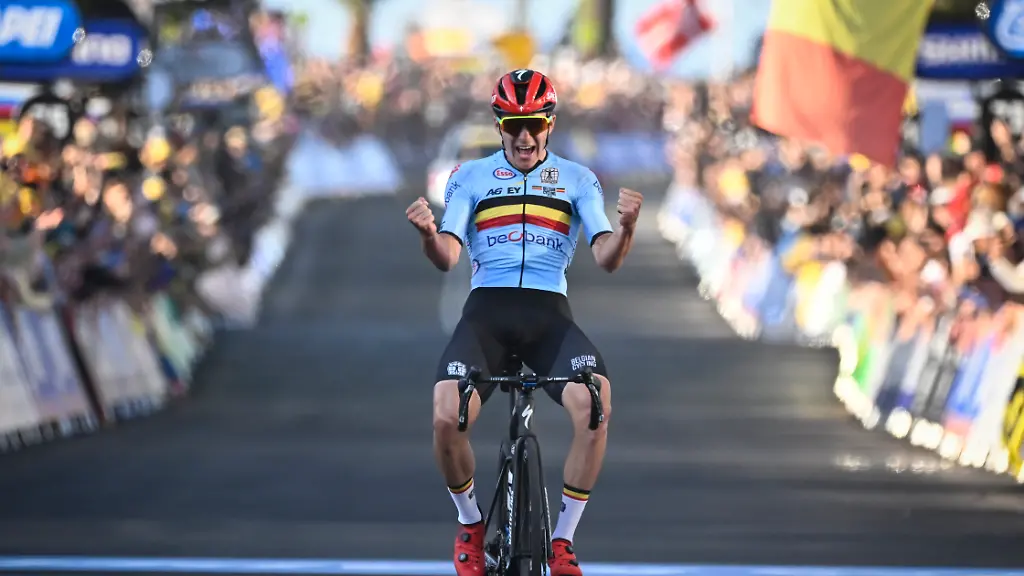 Remco Evenepoel schlug die Hände vor sein Gesicht, schüttelte den Kopf und rollte nach einer beeindruckenden Triumphfahrt jubelnd über den Zielstrich. Überschattet vom Skandal um Mitfavorit Mathieu van der Poel ist der belgische Jungstar in Down Under erstmals zum WM-Titel gestürmt. Der 22 Jahre alte Rad-Profi holte sich nur zwei Wochen nach seinem Vuelta-Erfolg nach 266,9 Kilometern im australischen Wollongong den Sieg im Straßenrennen vor dem Franzosen Christophe Laporte und dem Australier Michael Matthews. Damit bewegt sich das Jahrhunderttalent immer mehr auf den Spuren seines legendären Landsmannes Eddy Merckx, der 1967 ebenfalls im Alter von 22 Jahren seinen ersten WM-Titel gewann.