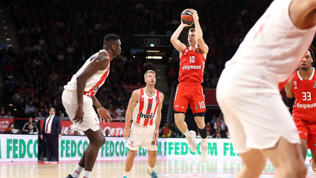 Der Aufwärtstrend der Basketballer des FC Bayern München in der Euroleague ist gestoppt. Die Mannschaft von Trainer Andrea Trinchieri verlor zu Hause mit 71:82 (34:40) gegen Olympiakos Piräus, nachdem die Bayern zuvor zweimal in Serie im Europapokal gewonnen hatten. Mit einer Bilanz von zwei Siegen und sechs Niederlagen rangiert der Basketball-Bundesligist weiter im Tabellenkeller.