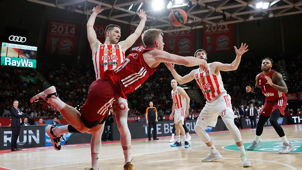 Die Basketballer von Bayern München stehen erneut in den Playoffs der EuroLeague. Das Team von Chefcoach Andrea Trinchieri besiegte Roter Stern Belgrad deutlich mit 82:57 (42:33) und ist mit 13 Siegen und 12 Niederlagen nicht mehr von einem der ersten acht Plätze der Gruppenphase zu verdrängen.