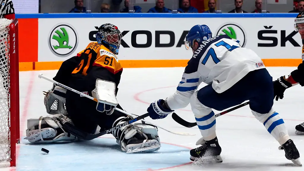 Das 18 Jahre alte Ausnahmetalent Patrik Laine (7./60.), Leo Komarov (10.), der ebenfalls erst 18-jährige Sebastian Aho (30.) und Jarno Koskiranta (40.) schossen die Treffer für wie erwartet überlegenen Finnen. Der Iserlohner Brooks Macek traf zum 1:4 (39.) für das deutsche Team, das zuletzt vor drei Jahren in Helsinki mit zwei Niederlagen in eine WM gestartet war.