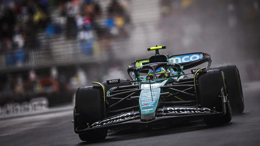 Wetterfester F1-VeteranAlonso rast durch chaotisches Regen-Training