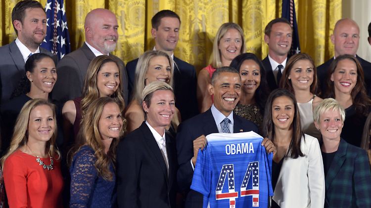 Edelfan: Der damalige US-Präsident Obama empfängt die Weltmeisterinnen 2015 im Weißen Haus.