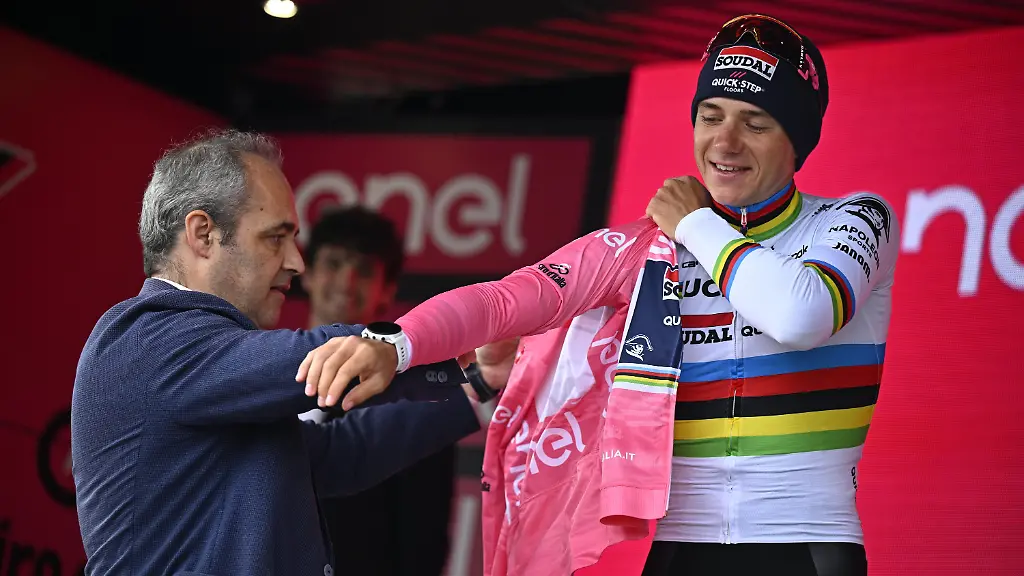 Dabei hatte der Belgier nur Stunden zuvor auf der neunten Etappe einen knappen Sieg im Kampf gegen die Uhr gefeiert und war zurück ins Rosa Trikot des Gesamtführenden geflogen. Evenepoel entschied die nächste Regenschlacht bei der Italien-Rundfahrt für sich und sicherte sich im Einzelzeitfahren mit hauchdünnem Vorsprung den Tagessieg, nachdem er tags zuvor Zeit eingebüßt hatte.