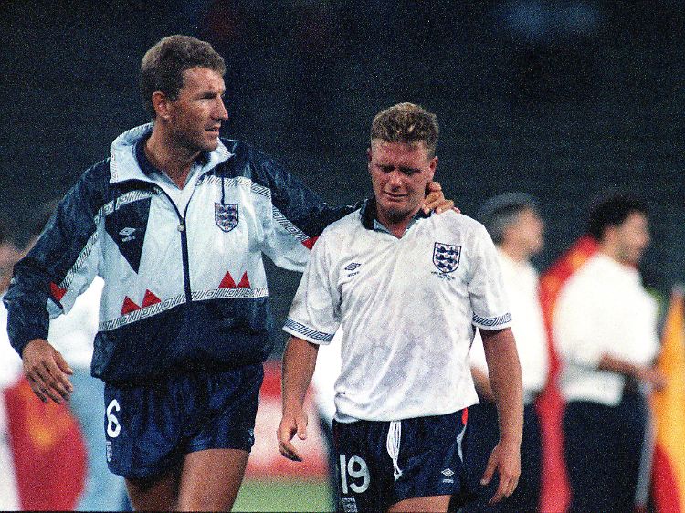 Paul Gascoigne verlässt bei der WM 1990 nach dem Elfmeterschießen im Halbfinale den Platz.