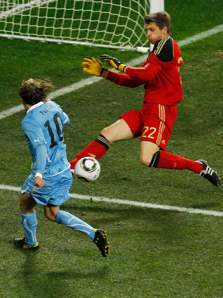 Bei Rückpässen agierte er sicher, ein Freistoß von Diego Forlán (7.) segelte knapp über das Tor. Bei einem Forlán-Kopfball hatte Butt Glück, dass Per Mertesacker rettete (25.). Chancenlos war der 1,91 Meter große Keeper gegen den präzisen Flachschuss von Edinson Cavani (28.). Sofort krempelte er die Arme hoch und feuerte seine Mitspieler an, dagegenzuhalten und den Kopf nicht hängen zu lassen.