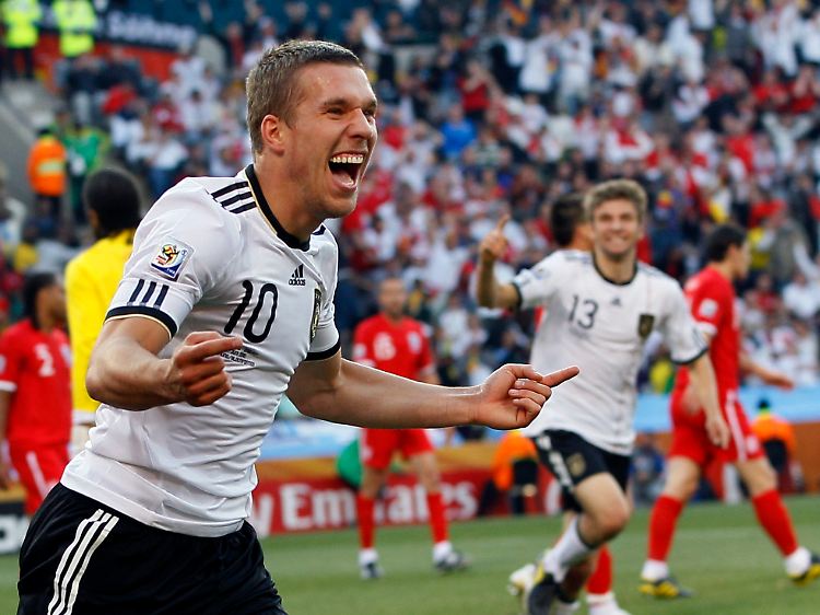 Angeschlagen: Lukas Podolski, der hier sein Tor zum 2:0 gegen England im Achtelfinale feiert.
