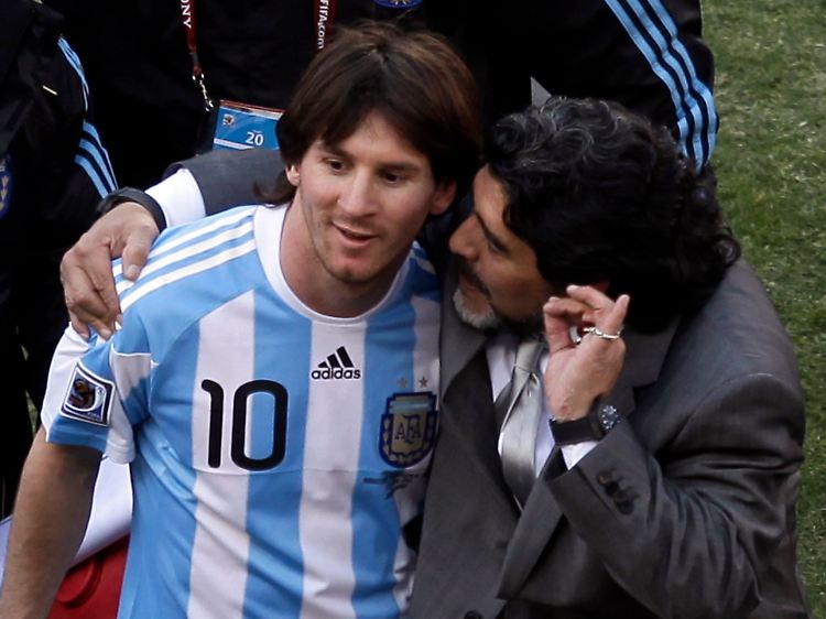 Nationalcoach Maradona weiß, wie wichtig Messi für sein Team, ja für das fußballerische Wohlergehen der ganzen Nation ist. Ihn mal dem Volk vorzuenthalten, "wäre eine Sünde", sagte er. Maradona weiß, Messi macht den Unterschied. Dass die beiden Charaktere kaum unterschiedlicher sein könnten, zeigen auch die WM-Tage in Südafrika. Maradona lacht laut beim Training, scherzt schon mal mit den Journalisten, nicht nur seine Brillanten in beiden Ohren verleihen den "Gauchos" einen eigenen Glanz. Für die Fotografen trug er bei einer Pressekonferenz auch gern die neue Designer- Sonnenbrille, die ihm seine Töchter zum Vatertag geschenkt hatten.