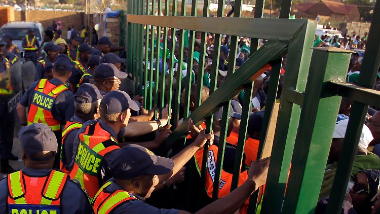 "Die Polizei hat mich gebeten, wegen der Ausschreitungen und Verletzungen zu unterbrechen", sagte der südafrikanische Schiedsrichter Steve Goddard. Der verletzte Polizist sei "unter einem umfallenden Eingangstor begraben und niedergetrampelt" worden, berichtete ein Polizeisprecher. Unter den Verletzten ist offenbar mindestens ein Kind.