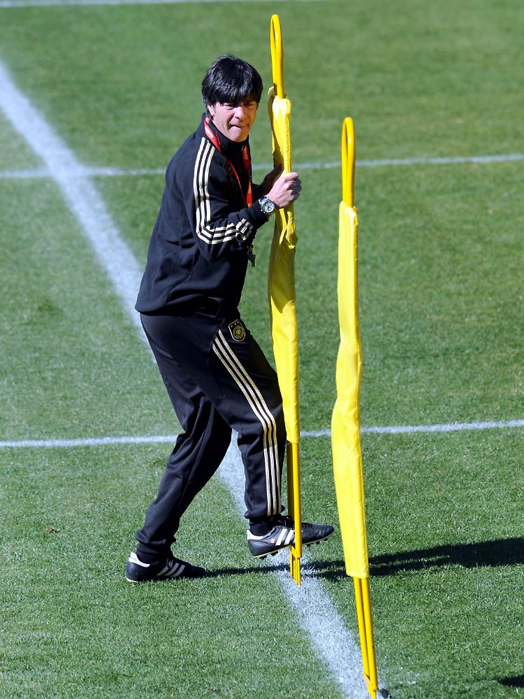 Auf die erste Winter-WM hatten sich Bundestrainer Joachim Löw und sein Team schon in der Vorbereitung eingestellt. Zeugwart Thomas Mai versuchte, "auf alle Eventualitäten vorbereitet zu sein". Darum wurden neben dicken Jacken und Mützen sogar Handschuhe mitgebracht. Weiße und schwarze Trikots gibt es auch in der Ausführung mit langen Ärmeln - die brauchten Lothar Matthäus, Jürgen Klinsmann & Co. bei ihren WM-Auftritten nicht. Diesmal ist's kühler, auch wenn es für die DFB-Kicker erst im dritten Gruppenspiel gegen Ghana richtig kalt werden dürfte. Die zweite Partie findet am Freitag in Port Elizabeth am Indischen Ozean um 13.30 Uhr statt. Das dort angesetzte deutsche Abschlusstraining im Nelson Mandela Bay Stadium wurde von der FIFA gestrichen, um den ramponierten Platz zu schonen. Aus diesem Grund fliegt die DFB-Auswahl nun erst am späten Nachmittag von Pretoria in den Spielort.