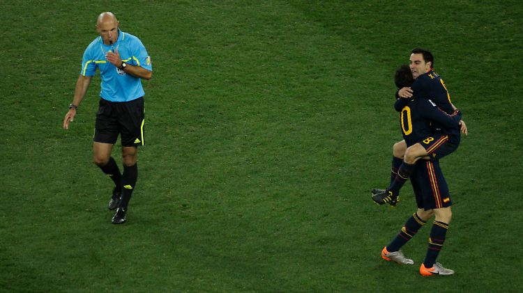 Weit weniger auffällig war dagegen das Duell der beiden Favoriten auf den Goldenen Ball des besten Turnierspielers. Weder der Niederländer Sneijder noch der Spanier Villa konnten sich groß in Szene setzen. Bezeichnend, dass Villa in der 70. Minute den Ball aus vier Metern nicht im Tor von Oranje unterbringen konnte. Spielerisch im Mittelpunkt stand eher das spanische Mittelfeld-Ass Xavi, der Dreh- und Angelpunkt beim Europameister und im WM-Finale bester Akteur auf dem Feld war.