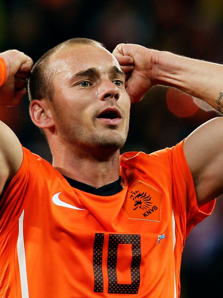 Der mit nur 1,70 Meter kleinste Spieler ist im Oranje-Team der Größte. Nach dem Triumph in der Champions League mit Inter Mailand gegen die Bayern sowie dem Gewinn der italienischen Meisterschaft und des Landespokals winkt Sneijder der vierte große Titel binnen weniger Wochen - ein Novum in der Fußball-Historie. "Ich bin im Moment in der Form meines Lebens, so stark wie nie", sagte der Mittelfeldstar. Auf der Einkaufsliste namhafter Klubs steht er spätestens nach seinen beiden Treffern im Viertelfinale gegen Brasilien ganz oben. Das jüngste Angebot von Manchester United schlug er jedoch aus.