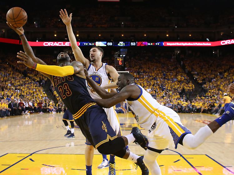 Die Entscheidung für Golden State fiel bereits im dritten Viertel. Auch ohne Stephen Curry, der zum größten Teil mit Foulproblemen auf der Bank saß, zog das Team aus Kalifornien davon (82:62). Der wertvollste Spieler der regulären Saison (MVP) erzielte 15 Zähler in lediglich 20 Minuten. Der Meister traf hochprozentig aus der Distanz provozierte in der Defensive immer wieder Ballverluste der Cavaliers. Bis zur Halbzeit (44:52) war das Spiel offen, danach verlor das Team aus Ohio in der Offensive völlig den Faden.