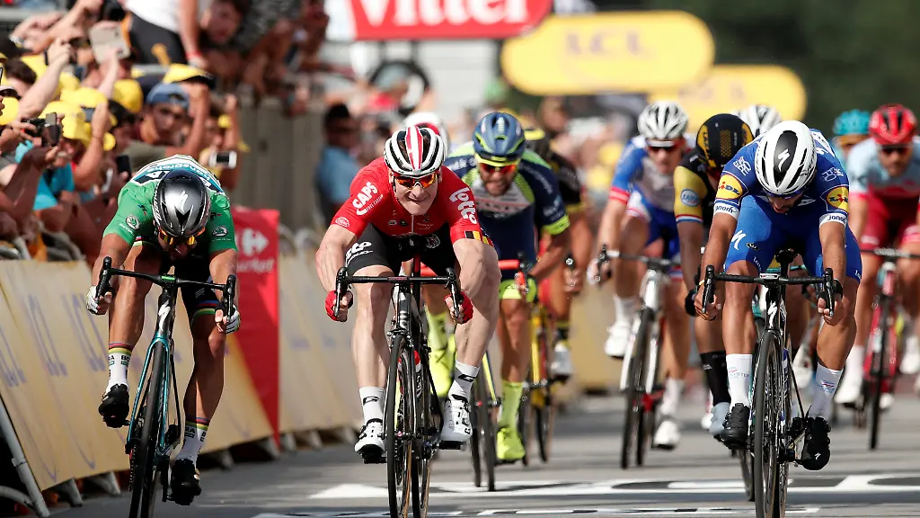 Kittel (Arnstadt/Katusha-Alpecin), der weiter auf seinen insgesamt 15. Tour-Etappensieg warten muss, war im Finale eingeklemmt und konnte nicht ganz vorne eingreifen. Im Vorjahr hatte der Thüringer in der Form seines Lebens fünf der ersten elf Etappen gewonnen. Am Samstag war Kittel zum Auftakt in Fontenay-le-Comte Dritter geworden, einen Tag später konnte er nach einem Defekt nicht in die Entscheidung eingreifen. Das im Mannschaftszeitfahren am Montag eroberte Gelbe Trikot verteidigte Belgiens Olympiasieger Greg Van Avermaet (BMC) erfolgreich und führt weiterhin vor seinem zeitgleichen Teamkollegen Tejay van Garderen (USA). Titelverteidiger Chris Froome (Großbritannien/Sky) kam wie die weiteren Favoriten auf den Gesamtsieg ohne Zeitverlust ins Ziel.