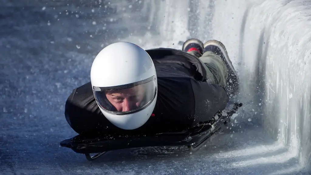 Mit 99 Kilometern pro StundeHarry rast kopfüber durch den Eiskanal, Meghan kneift