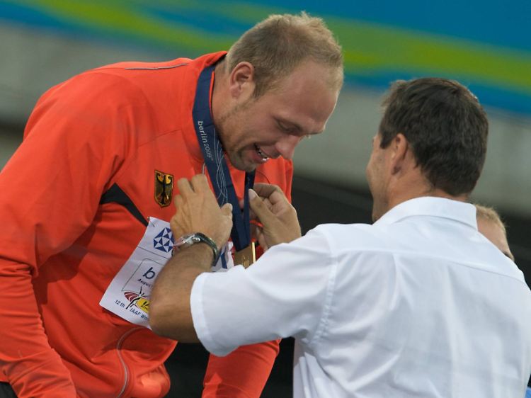 2009 in Berlin ließ sich Harting noch von Riedel die Goldmedaille umhängen.