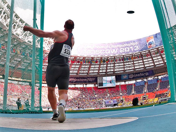 Alle Kameras und Augen im Luschniki-Stadion waren auf Robert Harting gerichtet, da setzte der Diskus-Hüne sein breitestes Grinsen auf, tänzelte vor den Fotografen, griff an sein Trikot - und zerriss es mit einem Freudenbrüller. Mit seiner bekannten Jubelgeste feierte der 28 Jahre alte Berliner in Moskau sein drittes WM-Gold in Serie. Ein Jahr nach seinem Olympia-Triumph von London verteidigte Harting seine Vormachtstellung im Wurfring mit Schmerzen und guten Nerven.