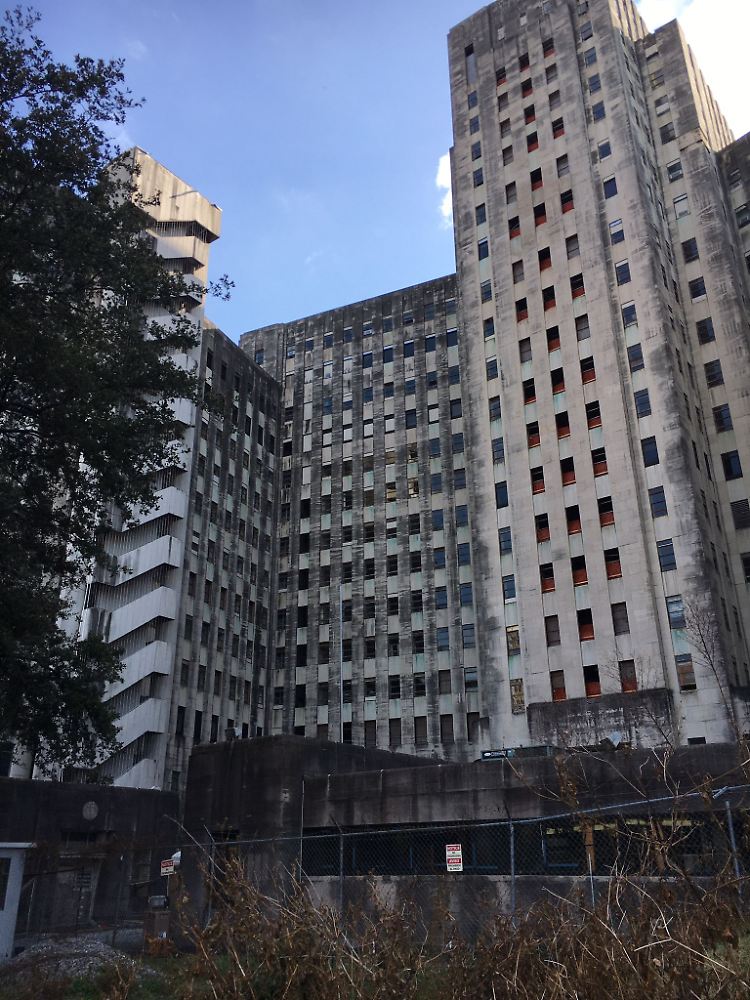 Auch zwei keine zehn Jahre alte Krankenhäuser haben die Lage rund um das Gefängnis und das Gerichtsgebäude kaum verbessert. Das alte Charity Hospital, das während des Hurrikans Katrina im Jahr 2005 schwer beschädigt und anschließend nicht mehr eröffnet wurde, steht wenige Gehminuten entfernt leer und verrottet. Damals sorgte die Evakuierung der Patienten aus dem überfluteten Krankenhaus - sie mussten durch das Hochwasser in den Fluren transportiert und dann mit einem Hubschrauber auf dem Dach abgeholt werden - landesweit für Schlagzeilen. Heute hängt ein altes Vorhängeschloss vor dem Eingangstor - und eine Mitarbeiterin einer Sicherheitsfirma sitzt nebenan in einem heruntergekommenen Toyota und starrt auf ihr Handy.