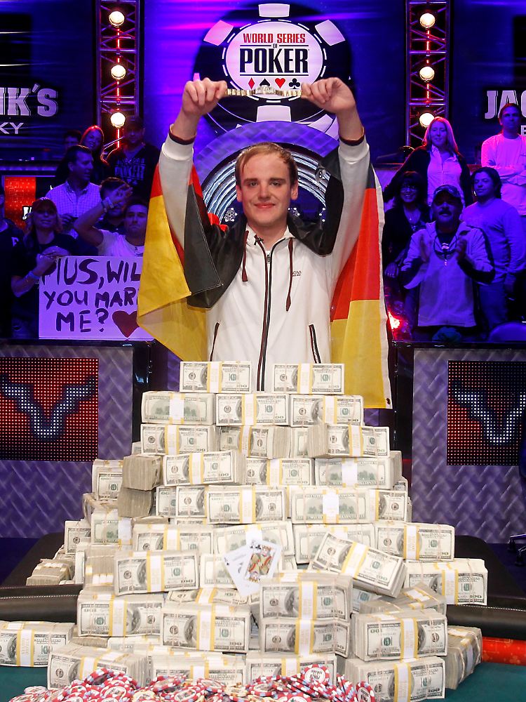 Am Ende sind es noch drei Spieler, die in Las Vegas um den großen Jackpot spielen. Der ist mit 8,7 Millionen Dollar gefüllt - und geht letztlich an Pius Heinz. Nach seinem Triumph teilt der 22-Jährige pathetisch mit: "Hiermit verkünde ich stolz, dass ich der Poker-Weltmeister 2011 bin! Ich habe für Deutschland gewonnen."