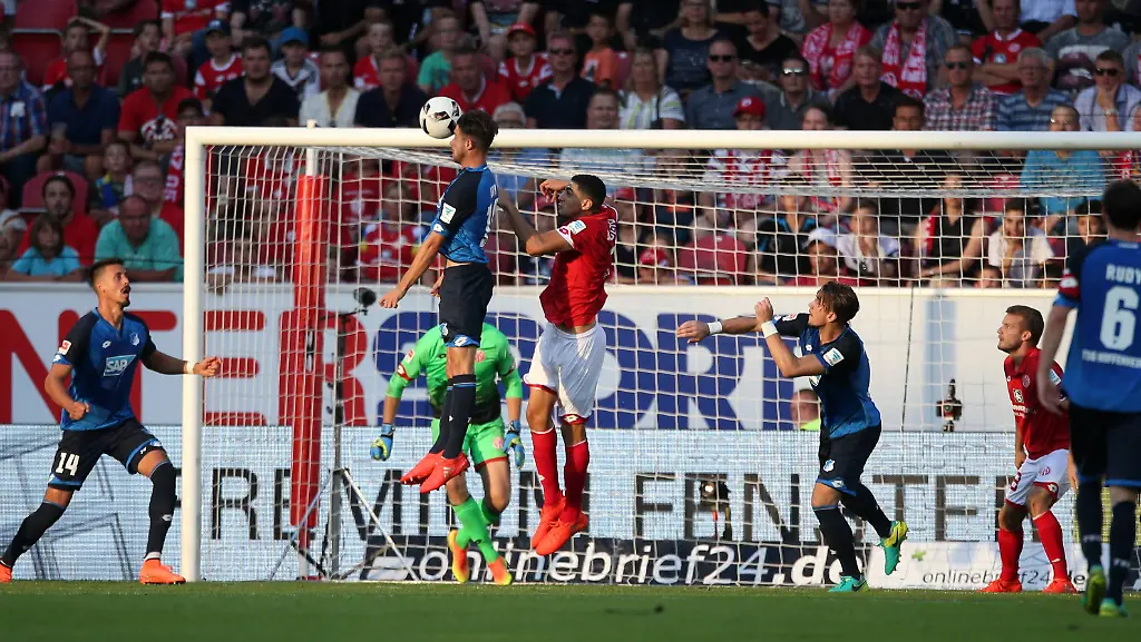 Nach der Auftaktniederlage in Dortmund hatte FSV-Trainer Martin Schmidt seine Schützlinge ermahnt, sich gegen Hoffenheim nicht für den Europapokal-Start zu schonen. "Die Liga ist für uns das Nonplusultra", sagte Schmidt. Und sein auf vier Positionen verändertes Team erhörte den Coach. Der nur 1,65 Meter große de Blasis sorgte mit seinem Kopfballtor für einen Blitzstart der Hausherren. Auch danach ging die Taktik der Mainzer voll auf, zumal die Hoffenheimer Defensive um Torwart Oliver Baumann einen schwachen Tag erwischt hatte.