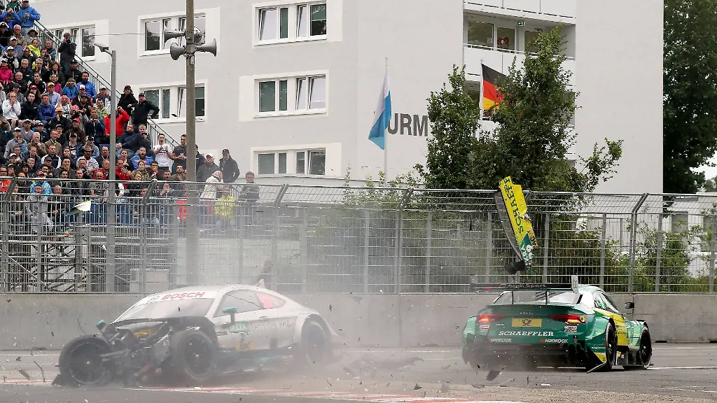 Keine Stunde zuvor waren die Fahrzeuge von Paffett (Großbritannien/Mercedes) und Rockenfeller (Audi) auf der Hochgeschwindigkeitsstrecke heftig kollidiert. Das Rennen wurde für 30 Minuten unterbrochen. Rockenfeller wie auch Paffett kamen offenbar glimpflich davon.