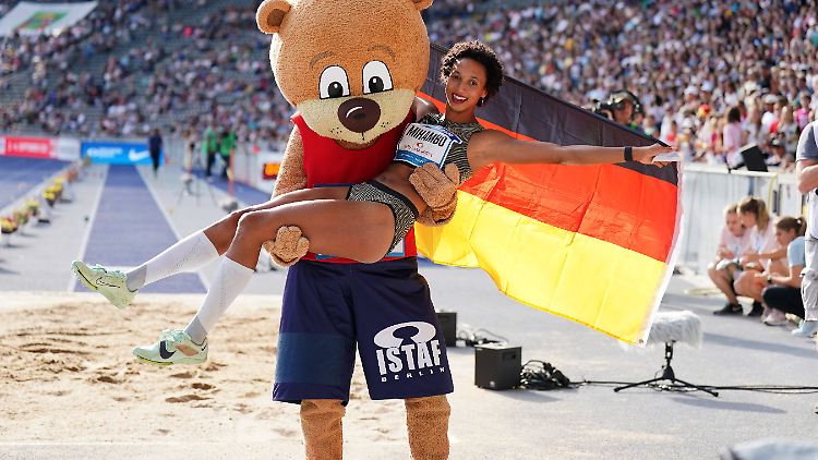 Mihambo nach ihrem Sieg beim ISTAF im Berliner Olympiastadion im September 2022.