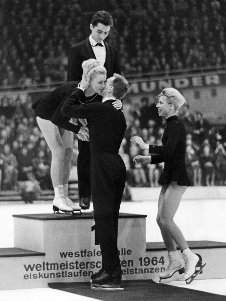 Weltmeister 1964 in Dortmund. Ludmilla Belussowa und Oleg Protopopow gratulieren den Deutschen.