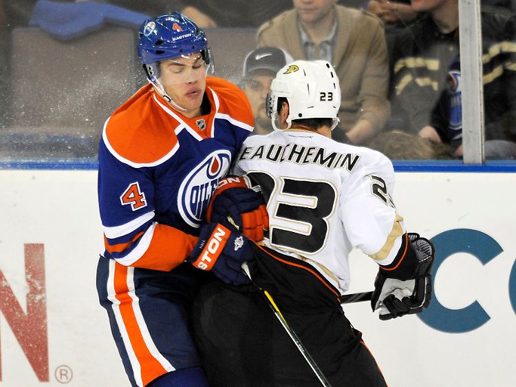 Eishockey-Jungstar Taylor Hall ist bei einem schaurigen Unfall mit einem Schrecken davongekommen, wenn auch einem blutigen. Vor dem NHL-Spiel gegen die Columbus Blue Jackets war der 20 Jahre alte Angreifer der Edmonton Oilers beim lockeren Einlaufen ausgerutscht und in die Bande geknallt. Dort wollte sein Teamkollege Corey Potter eine Kollision vermeiden und über den am Boden liegenden Hall springen.