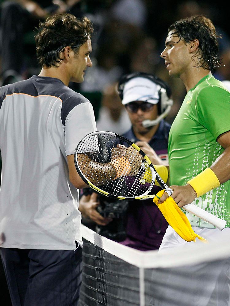 02.04.2011, 12:30 UhrDas mit Spannung erwartete Duell zwischen dem Weltranglisten-Ersten Rafael Nadal und seinem Vorgänger Roger Federer gerät überraschend einseitig. Nadal lässt Federer keine Chance und trifft nun im nächsten Topduell auf den Serben Novak Djokovic. Der ist 2011 noch ungeschlagen.