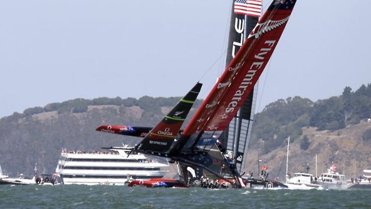 In der neunten Wettfahrt am Wochenende stand bei einem verpatzten Manöver der neuseeländischen Herausforderer das 260 Quadratmeter große steife Segel kurze Zeit wie eine Wand im Wind und riss die High-Tech-Yacht einseitig in die Höhe. Für etwa fünf Sekunden ragte der rechte Rumpf etwa 15 Meter in den Himmel, bevor er sich wieder senkte und unsanft auf dem Wasser aufschlug. Das weckte erneut Erinnerungen an den 9. Mai, als der britische Olympiasieger Andrew Simpson bei Bruch und Kenterung des schwedischen Katamarans "Artemis" sein Leben verloren.