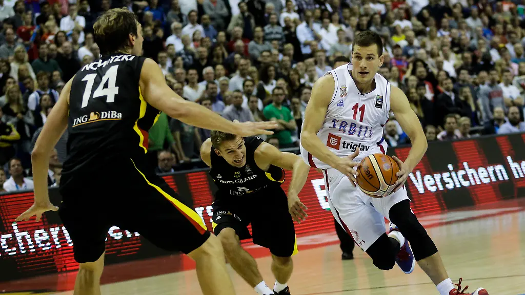 Auch ohne den Spanien-Legionär hielt die deutsche Mannschaft aber von Beginn an mit großer Energie dagegen. Nowitzki setzte mit einem harten Foul gleich ein Zeichen. Der 37-Jährige und seine NBA-Kollegen Dennis Schröder und Pleiß agierten anders als noch gegen Island am Tag zuvor sofort dominant. Nowitzki traf seinen ersten Wurf, Schröder nutzte seine Schnelligkeit gegen Point-Guard-Routinier Milos Teodosic zweimal gekonnt für den Zug zum Korb - das deutsche Team machte es dem großen Favoriten verdammt schwer.
