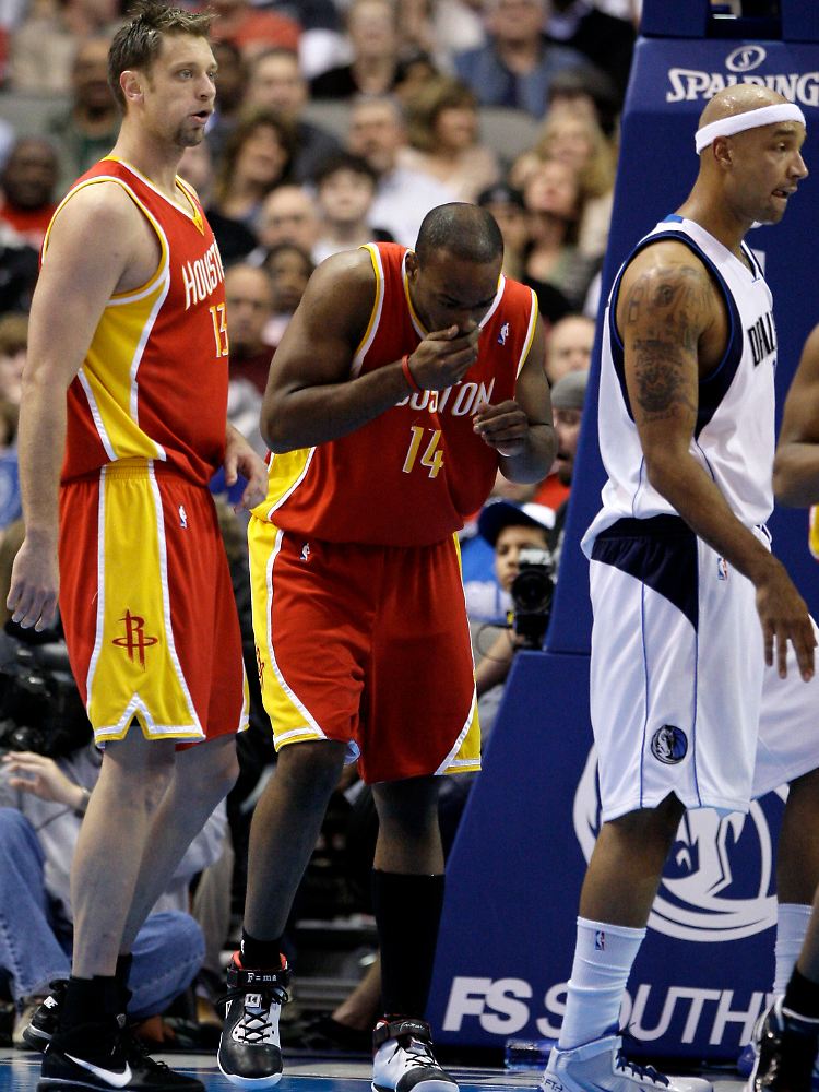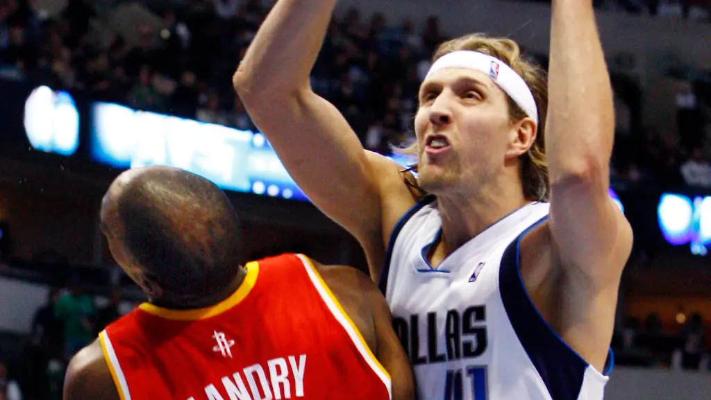 NBA-Star Dirk Nowitzki zieht sich in der Partie gegen die Houston Rockets eine Ellbogenverletzung zu. Den Gegenspieler, mit dem er zusammenprallt, erwischt es schlimmer: Er gewinnt zwar das Spiel, verliert aber drei Zähne.