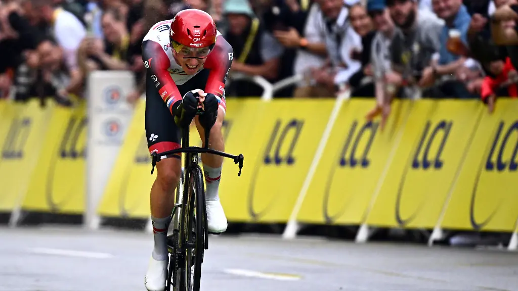 Angepeitscht von mehreren Hunderttausend Fans raste Tadej Pogacar durch die völlig verregneten Straßenschluchten von Kopenhagen und schockte die Konkurrenz gleich zum Auftakt der Tour de France. Im anspruchsvollen Einzelzeitfahren distanzierte der 23-Jährige seinen größten Konkurrenten Primoz Roglic um neun Sekunden und war zudem eine weitere Sekunde schneller als der Vorjahreszweite Jonas Vingegaard.
