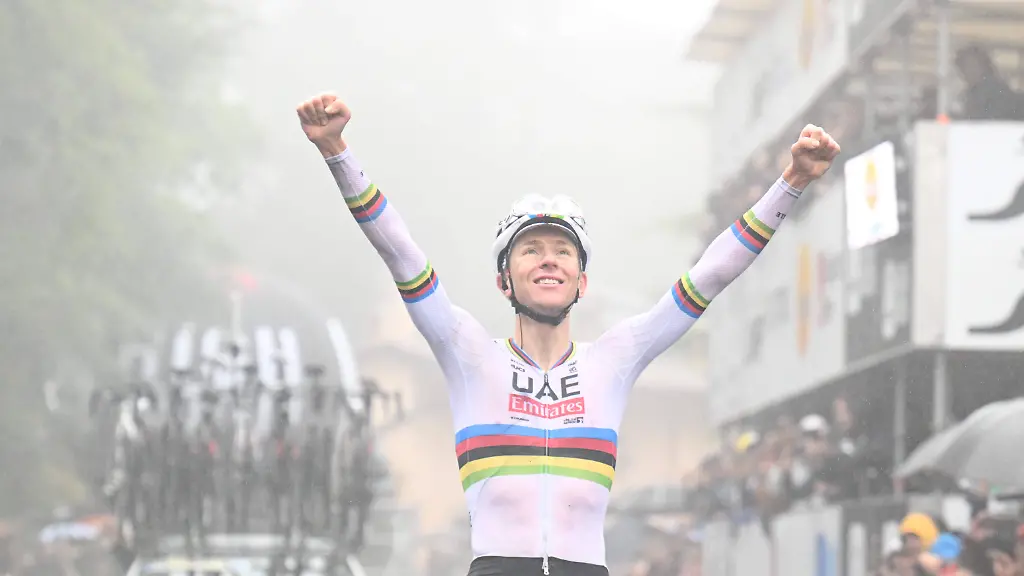 Er ist nicht aufzuhalten: Im Regenbogentrikot des Weltmeisters fährt Rad-Gigant Tadej Pogacar auch beim Giro dell'Emilia allen davon - und einen sagenhaften Vorsprung heraus. Seine Kraft scheint grenzenlos: An 56 Renntagen im Jahr 2024 siegte er 23 Mal.