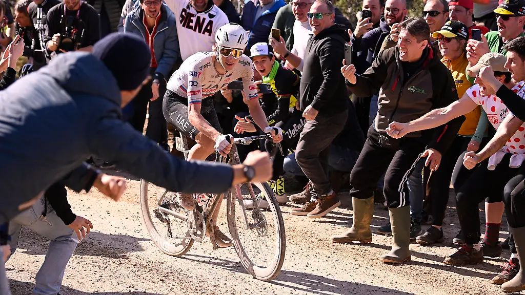 Ein Mann, ein Wort: "Am Monte Sante Marie", so hatte Tadej Pogacar im TV-Interview unmittelbar vor dem Start der Strade Bianchi schelmisch lächelnd die Frage beantwortet, wo er denn heute attackieren wolle. Jeder wusste es also - keiner konnte es verhindern. Nach einer Soloflucht für die Geschichtsbücher über 81 Kilometer gewann Sloweniens Radsport-Tausendsassa den italienischen Schotterklassiker mit unwirklichen 2:44 Minuten Vorsprung. Pogacars außerirdische Darbietung bei seinem ersten Saisonrennen ließ die Konkurrenz fassungslos zurück.