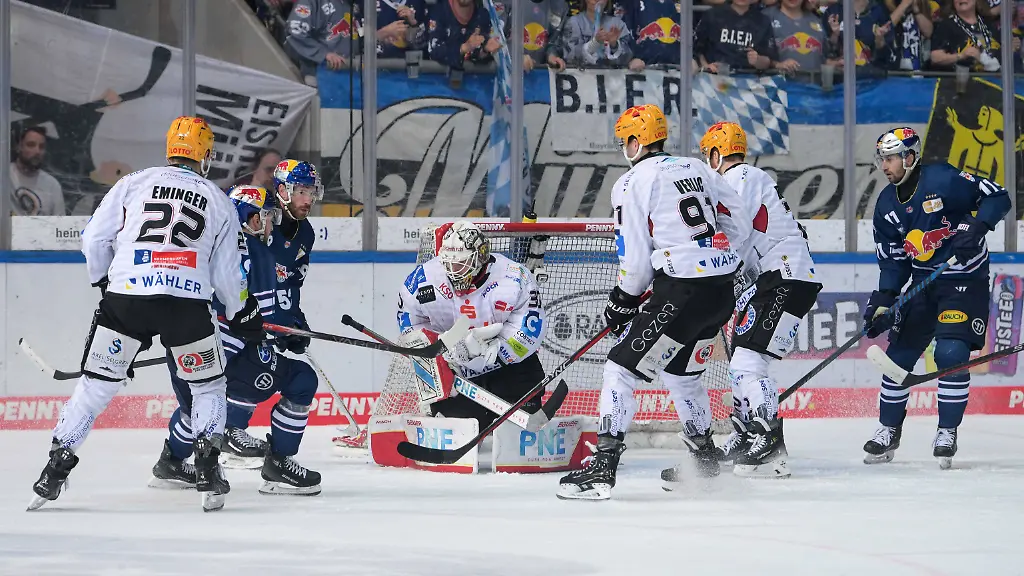 Red Bull München droht der schnelle Knockout im Halbfinale der Deutschen Eishockey Liga (DEL). Die Fischtown Pinguins gewinnen das vierte Spiel in München und erspielen sich damit Matchbälle. Goalie Kristers Gudlevskis sichert Bremerhaven den Sieg.