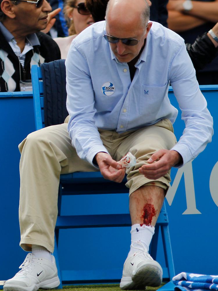 Der stets leicht verträumt wirkende Argentinier mit dem Silberblick hatte im Finale der Wimbledon-Generalprobe gegen Marin Cilic (Kroatien) kurzerhand die Nerven verloren. Beim Stand von 7:6, 3:4 trat er voller Wut gegen die Werbebande am Stuhl von Linienrichter Andrew McDougall, der dadurch eine nicht unerhebliche Verletzung am Schienbein erlitt. Mit hochgezogenem Hosenbein zeigte McDougall die blutende Schnittwunde und humpelte dann in die Katakomben. Scotland Yard bestätigte, dass eine Anzeige wegen Körperverletzung vorliegt. "Es wird Untersuchungen geben", teilte die Polizei in London mit.