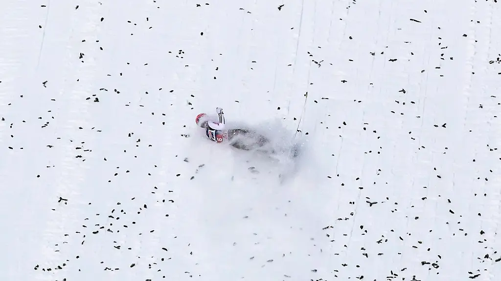 Das dritte Duell bei der Vierschanzentournee beginnt für Severin Freund mit einem Sturz. Der Skisprung-Weltmeister zieht sich im Testspringen mehrere Prellungen zu - fliegt aber trotzdem Bestweite.