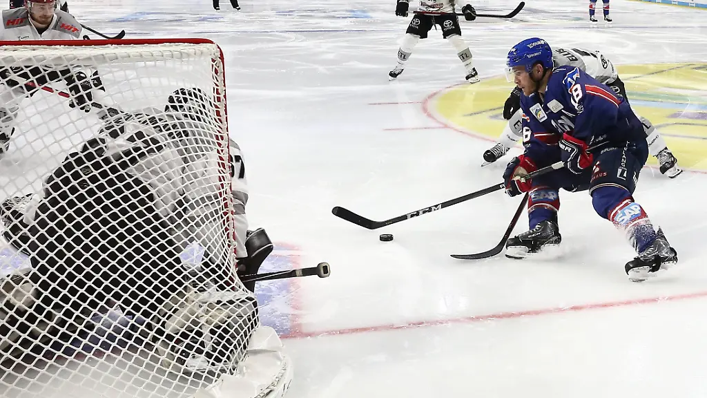 Endras lenkt Puck mit dem Schoner an die Latte