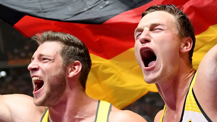 Für den Mannheimer Hofmann ist dieses EM-Silber von Berlin nach dem Universiade-Sieg 2017 tatsächlich der erste große Gewinn. "Die ganzen letzten Jahre wieder hochgekämpft, wieder rangekämpft, das ist im ersten Moment unbeschreiblich", so der Längste der drei Muske(l)tiere, wie sie gern genannt werden. Und so macht sich Hofmann eeuphorisiert mit Röhler auf die Ehrenrunde im Olympiastadion. Das sieht schon fast niedlich aus, weil sich die beiden großen Männer eine kleine Deutschland-Fahne teilen, bis jemand im Publikum eine zweite rausrückt.
