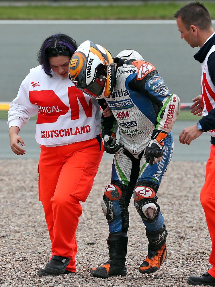 Das wissen auch die Konkurrenten der deutschen Lokalmatadoren. Und dennoch stürzten sie reichlich. Neben Lorenzo und Pedrosa erwischte es unter anderem auch noch Andrea Dovizioso, Andrea Iannone und gleich zweimal den Briten Cal Crutchlow. Durch die Reibung habe er am Unterarm einige Verbrennungen davongetragen, betonte sein Team-Manager Herve Poncharal. Nichts Ernstes, aber sehr schmerzhaft und unangenehm, meinte er. Crutchlow hat in den vergangenen vier Rennen drei Podestplätze geholt.