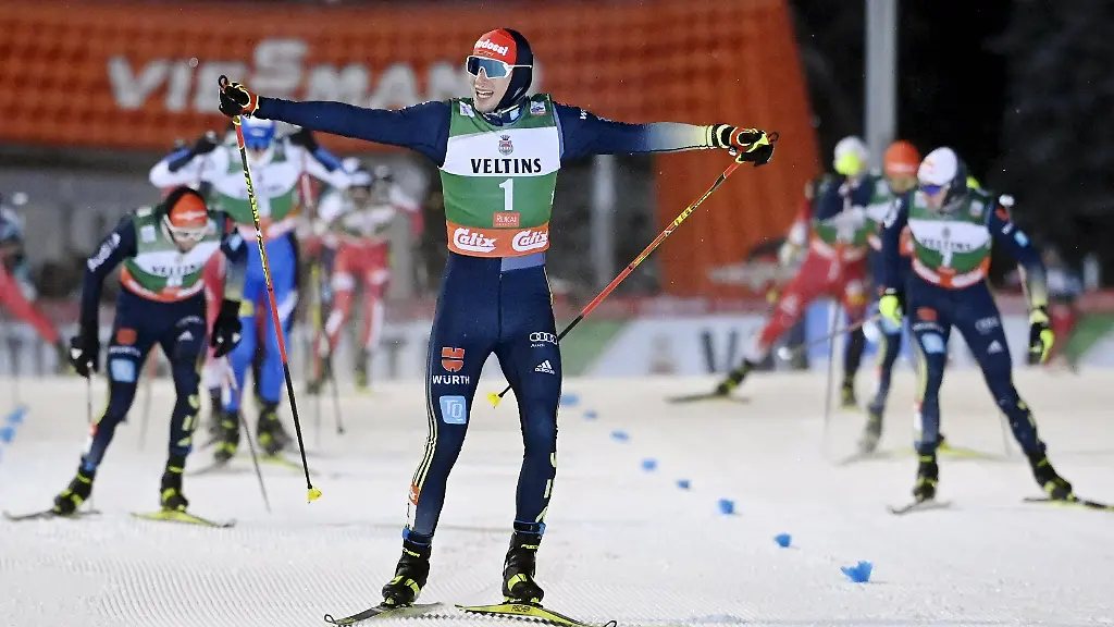 Terence Weber ließ Eric Frenzel und Vinzenz Geiger bei minus 15 Grad eiskalt stehen, dann war die Überraschung perfekt: Angeführt von Premieren-Sieger Weber haben die deutschen Kombinierer beim Weltcup im finnischen Ruka einen kaum für möglich gehaltenen Dreifachsieg gefeiert. Das Trio von Bundestrainer Hermann Weinbuch profitierte dabei auch von einer Disqualifikation des norwegischen Dominators Jarl Magnus Riiber.