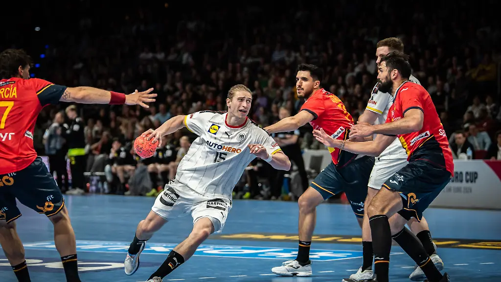 Das Motto für die erste Halbzeit? Alles auf Knorr! Ansatzlose Würfe aus dem Rückraum, grandiose Anspiele auf Kapitän Johannes Golla und gnadenlose Effektivität vom Siebenmeterpunkt: Die Spanier bekamen den deutschen Spielmacher überhaupt nicht in den Griff, als er die ausverkaufte Max-Schmeling-Halle mit allein zehn Toren im ersten Durchgang zum Beben brachte. Da auch der Block exzellent stand und Torhüter Andreas Wolff sieben von 17 Würfen parierte, ritten die Deutschen auf der Euphoriewelle zu einem Neun-Tore-Vorsprung zur Pause.