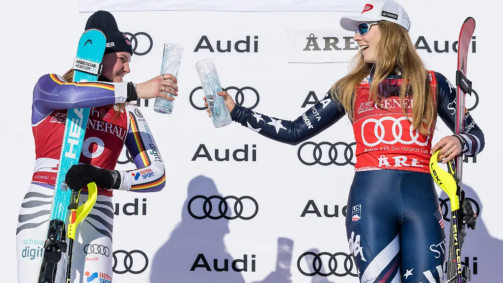 ALPINE-SKIING-FIS-WC-Are-ARE-SWEDEN-15-MAR-26-ALPINE-SKIING-FIS-World-Cup-slalom-ladies-Image-shows-Emma-Aicher-GER-and-Mikaela-Shiffrin-USA-Keywords-trophies