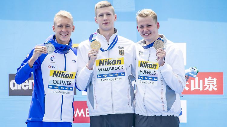 Als nach seinem ersten WM-Triumph die deutsche Nationalhymne erklang, atmete Florian Wellbrock tief durch und senkte den Kopf. Mit der Goldmedaille um den Hals versuchte der neue deutsche Schwimmstar zu begreifen, was gerade passiert war. "In den letzten Nächten habe ich vor dem Einschlafen immer daran gedacht: Du willst Weltmeister werden", sagte der 21-Jährige nach seinem Freiwassersieg im südkoreanischen Yeosu über zehn Kilometer: "Dass ich es jetzt geschafft habe, muss erstmal im Kopf ankommen." Sein Freund und Trainingspartner Rob Muffels, der mit Bronze gleich die zweite deutsche Medaille der WM in Südkorea gewann, half ihm dabei. "Wir haben auf die Ergebnisliste geguckt und gesagt: Weltmeister und Dritter, verdammt, das ist ganz schön krass", berichtete der 24-Jährige und grinste.