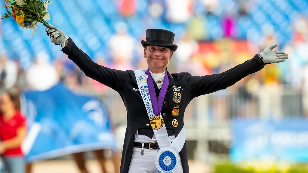 Eigentlich ist Dressur-Königin auf dem besten Weg, ihr drittes Gold bei den diesjährigen Weltreiterspielen zu gewinnen. Wegen Sturm Florence muss ihre Kür nun abgesagt werden – aus Rücksicht auf die Pferde.