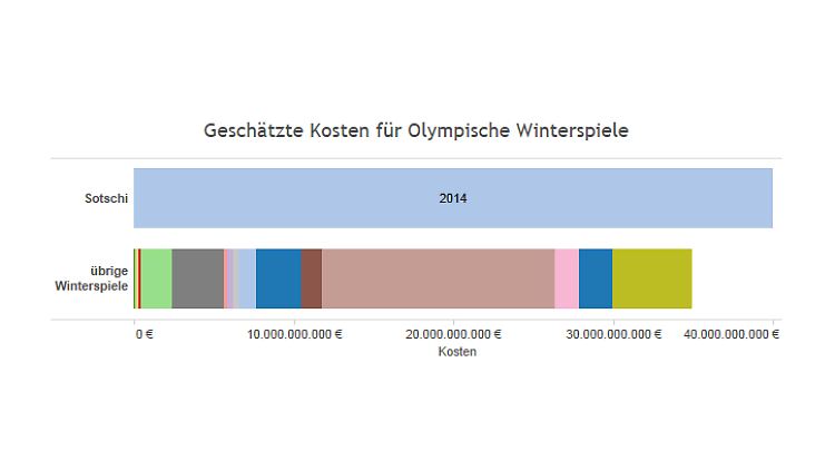 Neben Misswirtschaft, Fehlplanungen und Korruption sind in den meisten Fällen Infrastrukturprojekte der größte nachträgliche Kostentreiber. In Sotschi soll am Ende allein die nur gut 50 Kilometer lange “Goldstraße” zwischen Sotschi und der Bergregion Krasnaja Poljana rund 9 Milliarden Dollar gekostet haben - mehr als die Winterspiele 2010 in Vancouver insgesamt.