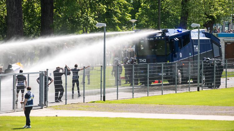 - Dem MDR zufolge warfen Fans der Thüringer die Scheibe eines Polizeiautos ein und griffen Polizisten an.